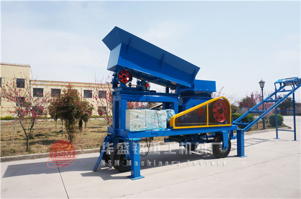 移動對輥破碎一體機運行中,各項給料、破碎、篩分設備協調作業,石料先進入破碎部分進行破碎加工,制砂之后進行篩分,粒度合格的物料才能進入制砂機進行制砂加工,然后合格的石料成品由出料裝置排出,未達標的部分則返到機內繼續再次加工處理。