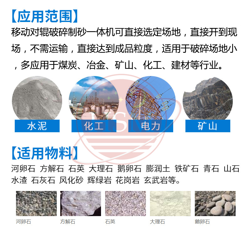 適用物料:建筑垃圾、河卵石、石英砂、花崗巖、玄武巖、鐵礦石、石灰石、石英石等。